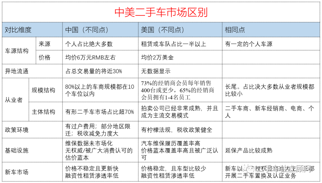 为什么在美国近几年上市公司的密集度如此之高呢?隔空猜想一下,也许跟美国二手车市场经过多年的发展,市场进入了成熟度红利期有关系(下图是中美市场对比)。