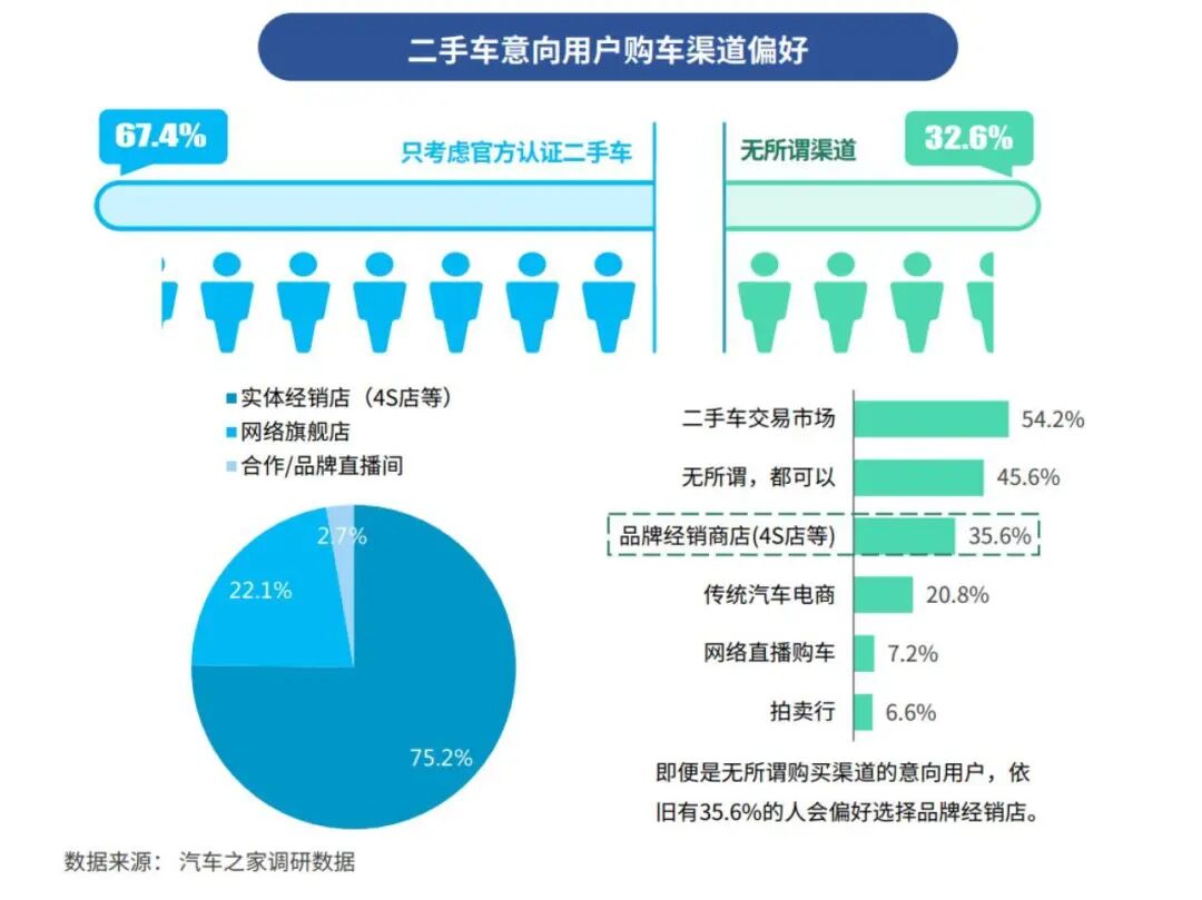 从二手车消费渠道来看,“官方认证二手车”逐渐成为潜在消费者最重要的选择,但落地情况与意向不符。