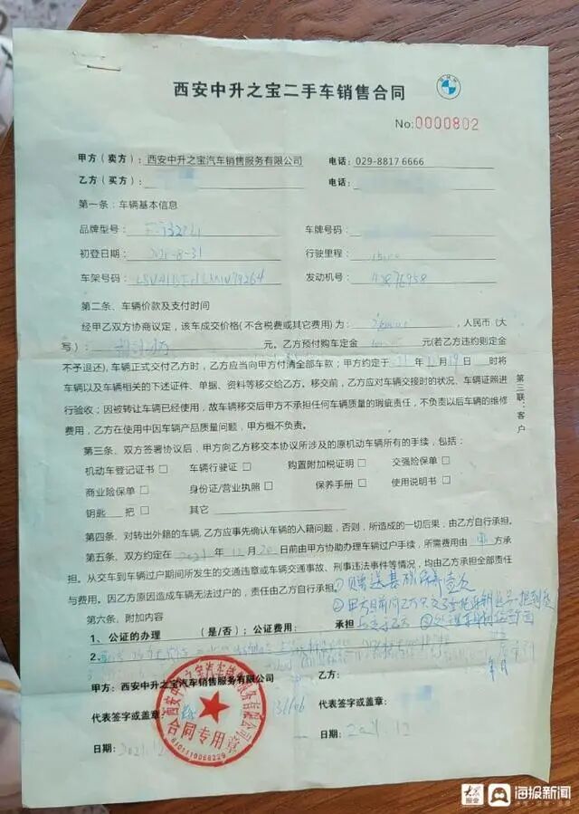 于女士表示,自己的购车合同没有体系官方认证的信息,西安中升之宝宝马也未给自己提供相关随车凭证。