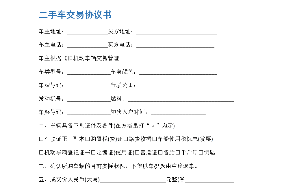 1、二手车商家合同要尽量完善和专业化。