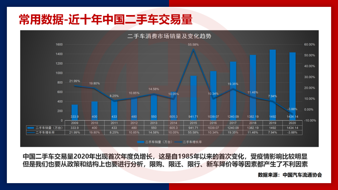 2020年中国二手车全年交易量超过1400万辆,过户数量超过2400多万辆,从过户数量看已经超过了新车上牌数量,二手车交易越来越活跃,市场竞争也越来越激烈。