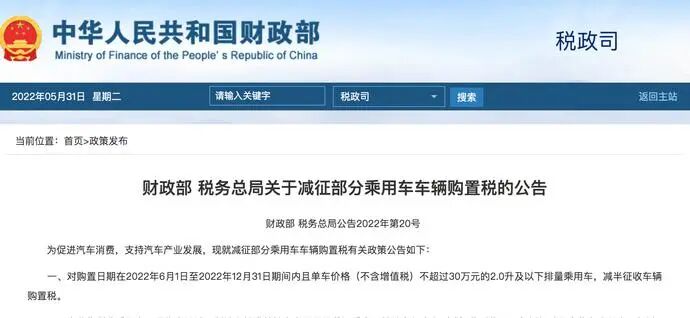 为促进汽车消费,支持汽车产业发展,现就减征部分乘用车车辆购置税有关政策公告如下: