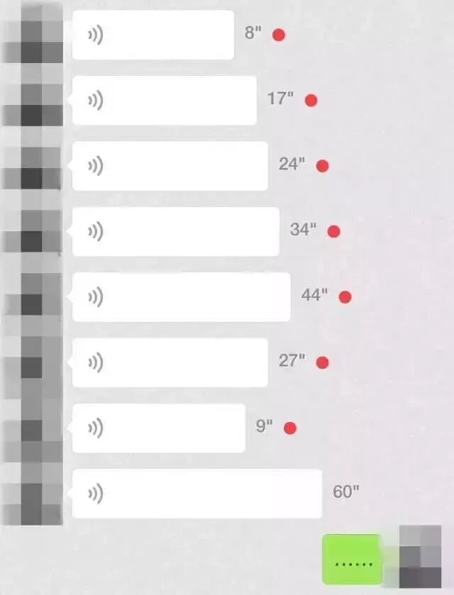 反正不知道各位怎么想,一次性发一大堆语音的要么是开车啥的不方便,要么是老人眼神不好,孩子不会打字,否则这种一大堆一长串语音炸弹的,要么就是懒要么就是自私,基本上如果是刚认识的人,在我心里和实际行动就“pass”掉了!