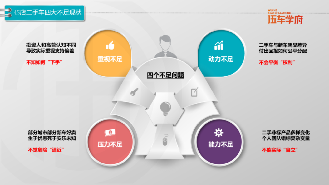 比如各4S店的二手车经理,技术出身的不会管理,不喜欢营销,沟通难度大,而销售出身的不懂技术,不愿意车间“吃苦”,导致了二手车业务需要“文武双全”的人才和综合人才稀缺。