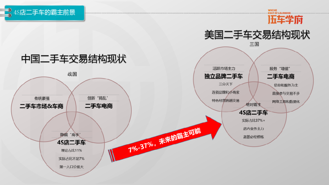 汽车厂家和经销商集团做二手车,有些持续积累的品牌目前已经获得了一定的市场份额和话语权,有些4S店甚至在当地能形成“领头羊”效应,但是相比较30000家4S店,这些卓越的二手车能力强的4S店毕竟还是太少了。