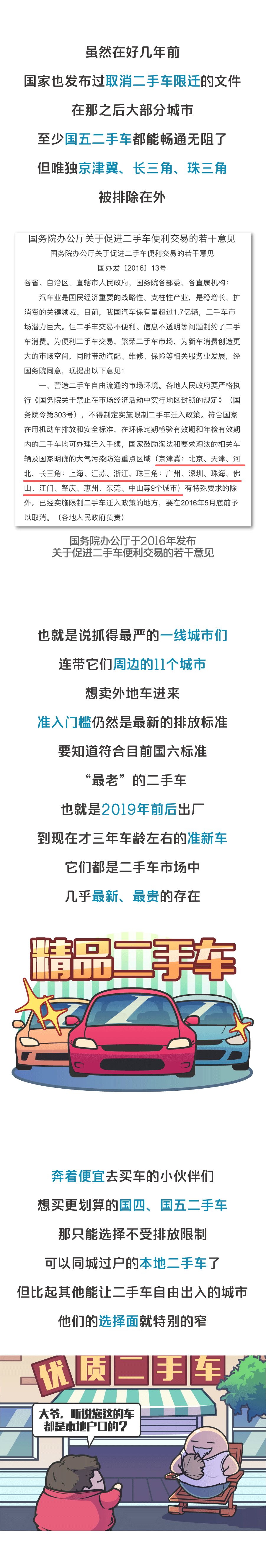 在大城市买了几回二手车的小伙伴,肯定有过这样的苦恼:本地的二手车要么选择少、要么价格高;而自己看好的外地二手车,却因为限迁政策没法买回来上牌。但最近的新政策一出,这种尴尬可能不会再上演了......