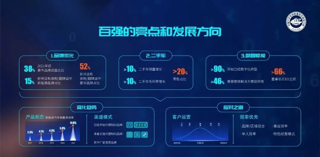 2021年百强经销商集团在品牌优化、二手车、数字化转型上,也有诸多亮点。