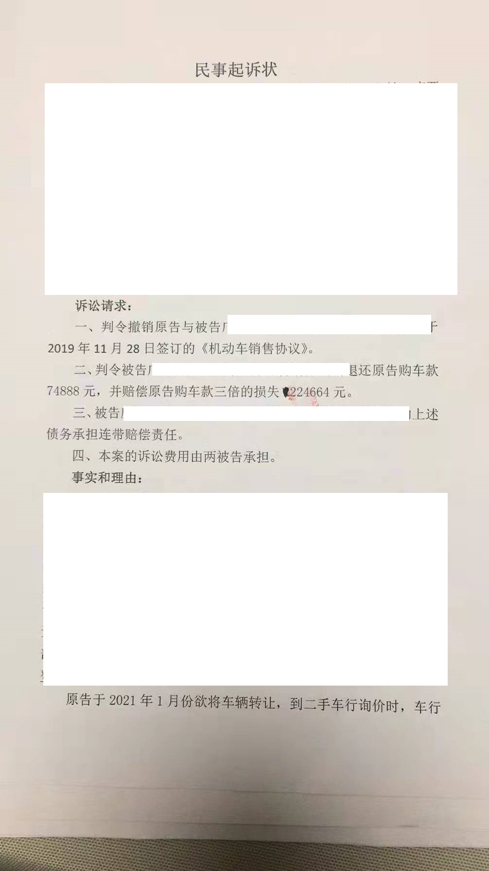 入行卖的的第一台二手车就摊上“退一赔三”的大事了,现在买车的用户已经起诉,不依不饶的。