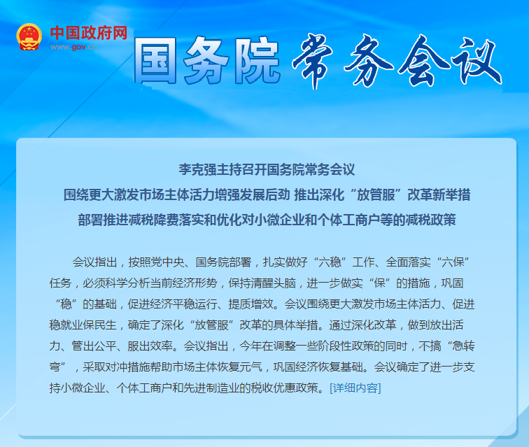 会议围绕更大激发市场主体活力、促进稳就业保民生,确定了深化“放管服”改革的具体举措。