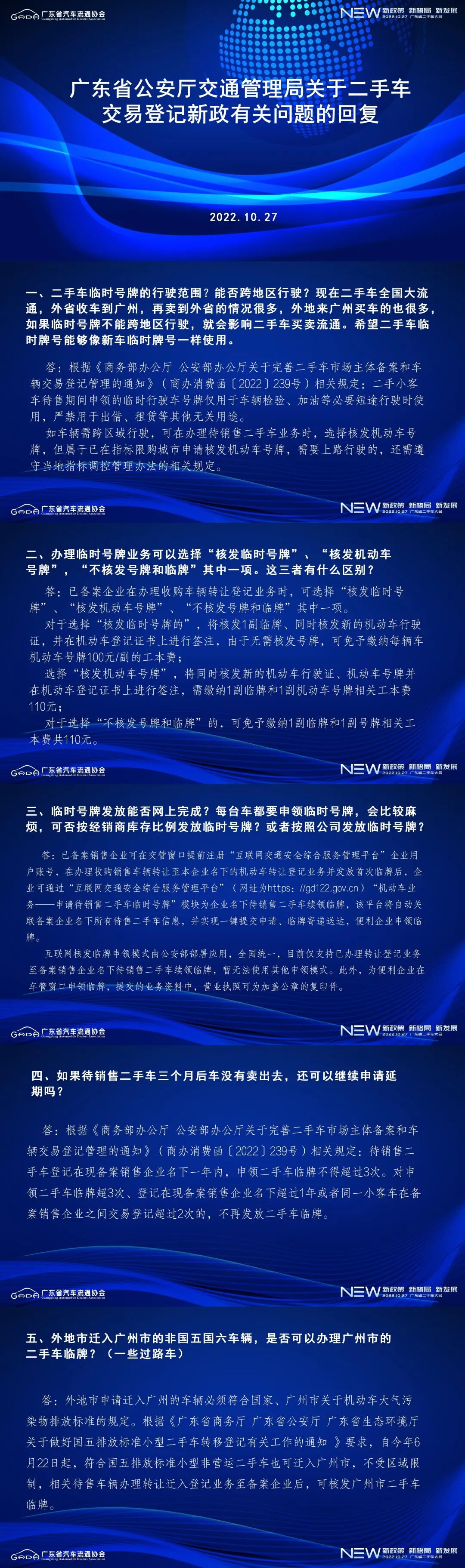 现将广东省公安厅交管局和广东省税务局对二手车新政的解读内容公开发布,供广大二手车企业学习参考。