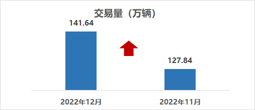 2022年12月,全国二手车市场交易量141.64万辆,交易量环比增长10.79%,同比下降12.47%,交易金额为840.18亿元。