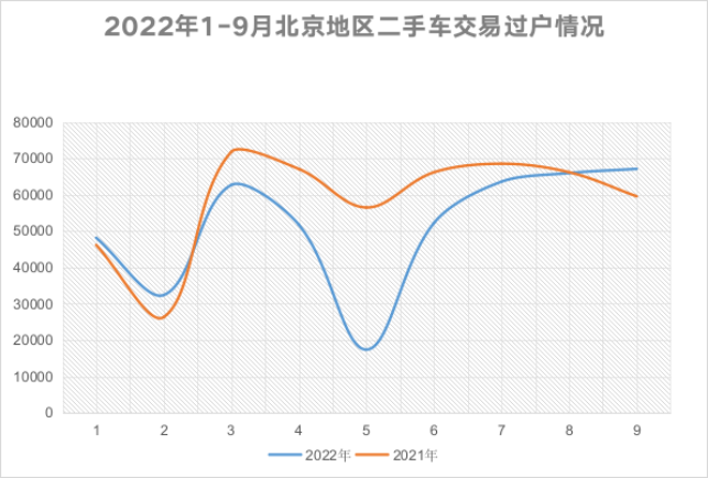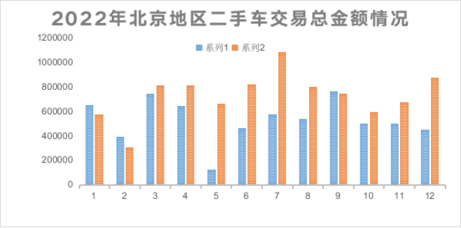 1、2022年北京地区二手车交易量高开低走、波浪起伏,整体降幅高于全国平均水平。