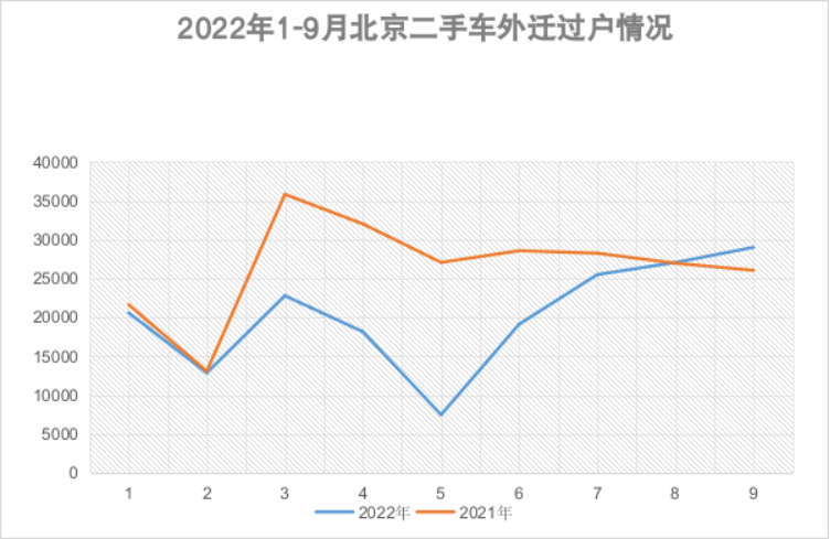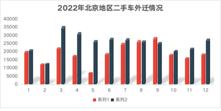 北京市汽车流通行业协会监测数据显示:2022年第三季度,北京地区二手车外迁量81536台,比去年同期81234台上涨0.37%,环比二季度大涨82.33%;三季度二手车外迁率月均41.38%,与去年41.89%基本持平;虽然四季度外迁量月均同比下降23.17%,12月更是下降32.43%,但四季度月均外迁率不降反升,保持在43.99%,同比去年同期42.49%提高1.5个百分点,12月份则以47.65%成为全年外迁率最高月,高出去年同期41.87%5.78个百分点。