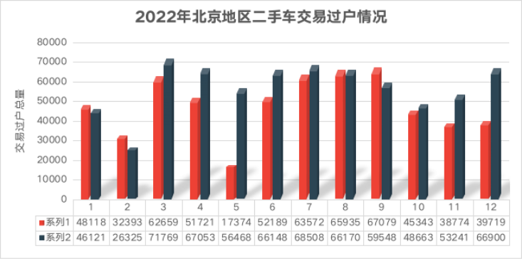 有关监测数据显示:2022年前11个月北京二手车成交过户545157辆,累计同比增长-13.47%,降幅低于新车同期-18.34%4.87个百分点。