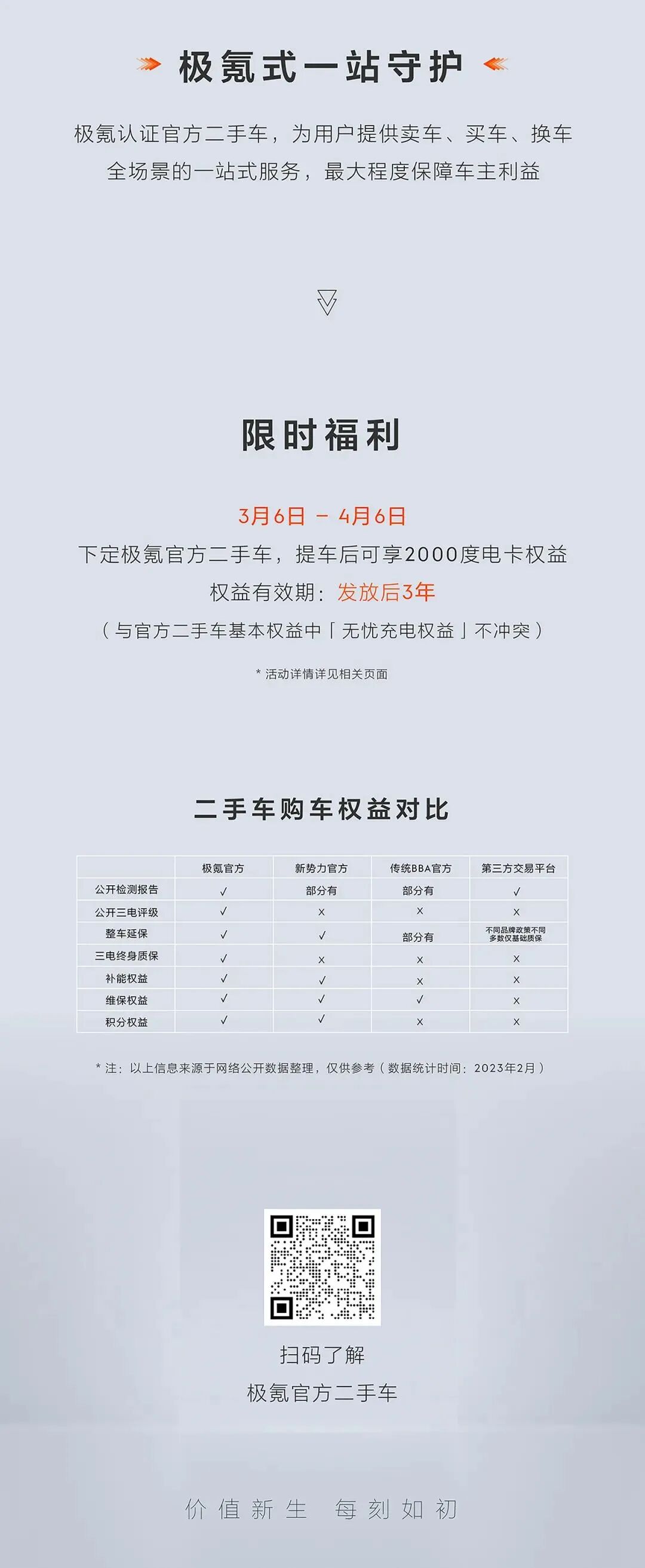 目前,极氪认证官方二手车商城已正式上线,支持全国购车,并推出了限时购车权益:3月6日-4月6日,用户下定极氪官方二手车,提车后可加赠2000度充电卡。同时,极氪也在全国主要城市的交付中心逐步布局官方二手车线下体验空间。