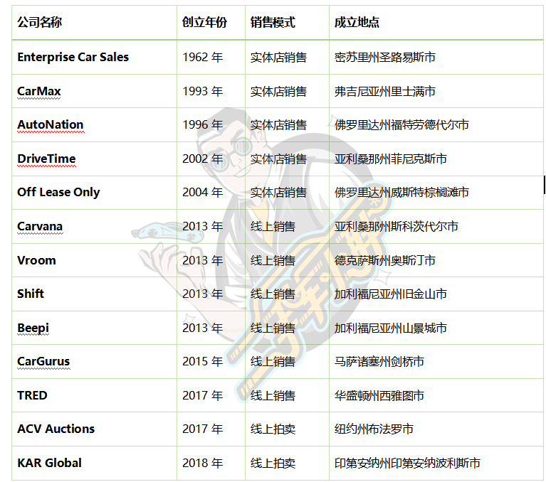 2000年代初,一些创新的二手车销售企业开始脱颖而出,它们重新定义了二手车市场。其中最著名的是Carmax,Carmax于1993年成立于弗吉尼亚州里士满市,是美国最大的二手车零售商之一。