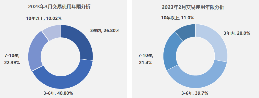 三、2023年3月二手车交易车辆使用年限分析