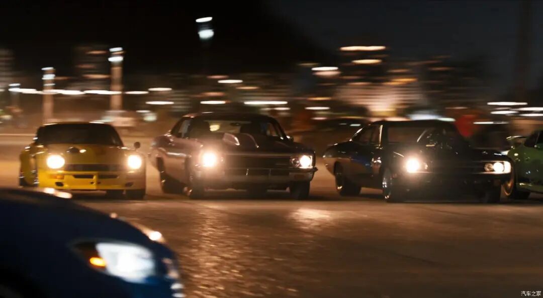 总之预告片向我们展现了一段四车齐发的飙车戏份。从一闪而过的画面我们能看到左起分别为日产Fairlady 240Z (HS30)、大反派但丁驾驶的雪佛兰Impala、多姆的Charger以及保时捷911(997)。