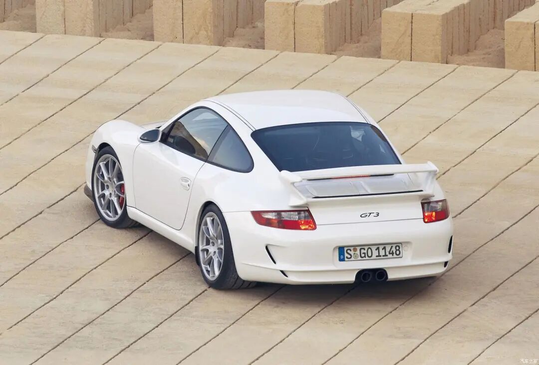 2006年2月,保时捷推出了第二代GT3,车迷们更多会称其为997.1 GT3。除了新的415马力3.6L水平对置六缸发动机外,该车还具有“零升力”的空气动力学特性,这就意味着这款车仅产生空气动力学下压力,而不会产生减少轮胎抓地力的“升力”。GT3采用了保时捷主动式PASM悬架的改良版,这款面向赛道的悬架使其成为保时捷RS或GT3版本中,首个配备电子可调悬架系统的车型。