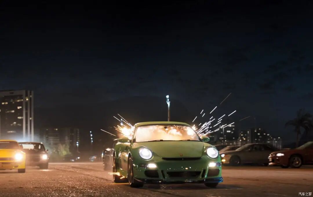 还是这组地下飙车戏,保时捷似乎在《速度与激情》系列中一直都是打酱油的存在,编辑能想起来有保时捷的戏份只有两场。一个是《速度与激情4》中吉泽尔(盖尔·加朵饰)首次登场时驾驶的那辆Cayman,另一个就是《速度与激情5》中“家人团队”car for car迎来的“蓝精灵”911了。