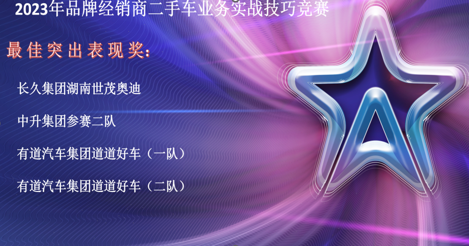 本次竞赛分别设立了最佳团队配合奖和最佳突出奖,最后重头戏本次竞赛的冠亚季军,分别是品牌经销商二手车业务实战技巧竞赛在长沙结束后,下一站我们将在山东开展,想参加交流学习的队伍,诚挚的邀请大家报名参加。