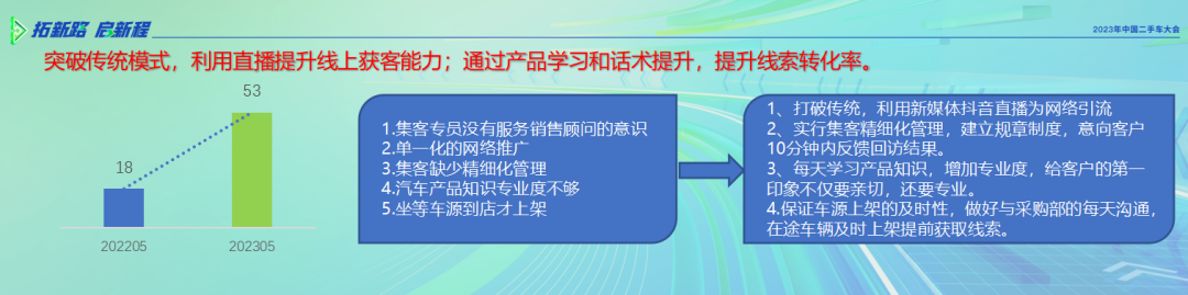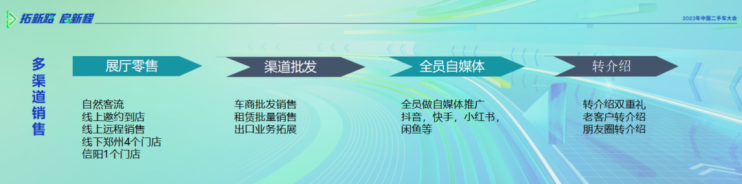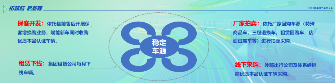 随着团队的扩大,销售能力也随之有很大提升,车源方面也开启了外部车源采购,承接体系内经销商置换认证车及试驾车,各大汽车租赁公司下线车辆,厂家兜底回购拍卖车辆。