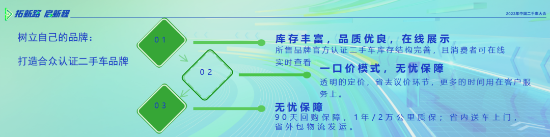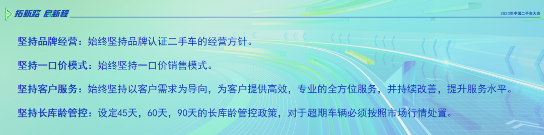 品牌的树立是需要内部的严格管理来实现的,因此在内部我们力争做到精细化管理,严把零售认证和检测,未进行整备和二次复检、认证的车辆不允许进行销售。