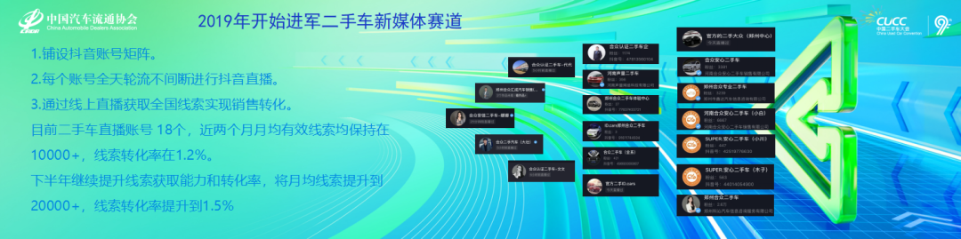 突破传统模式,利用直播提升线上获客能力;通过产品学习和话术提升,提升线索转化率:19年年底在集团主导下,我们开始进军新媒体赛道,铺设抖音账号矩阵,组织专职主播团队,每个主播一个账号,每个账号全天轮流不间断进行抖音直播。