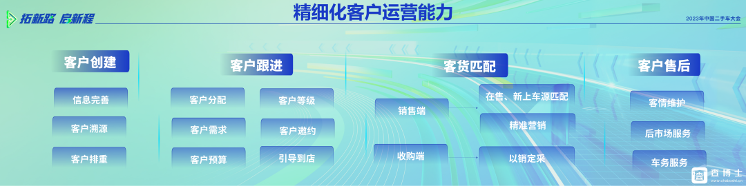 二手车行业,我们不是汽车生产厂家,我们只是“搬运工”,我们每一次交易所获得的客户才是真正的“企业资源”,如何通过我们的服务获得客户的信任,不断地创造彼此的认可和互利互惠,而不是早期的“出门再见,永不回头”的一锤子买卖?