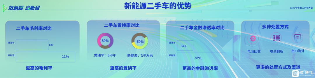目前全国不足10%的二手车从业者日常经营新能源,而目前新能源新车销售市场占比超过30%,限购城市和一线城市已经超过50%的可能,新能源二手车的交易占比和发展一定是有很大的潜力和机会的。