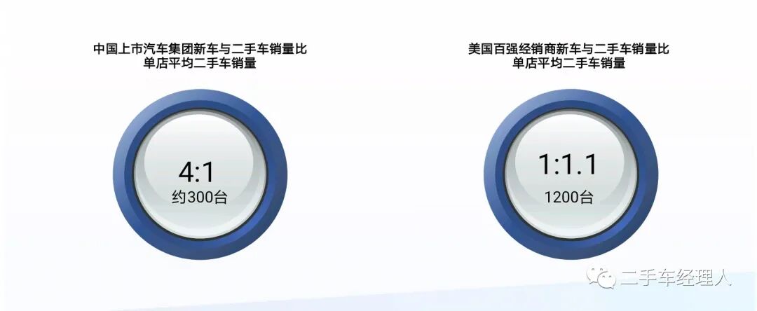 而美国百强经销商集团单店二手车销量为1200台,远高于我国。