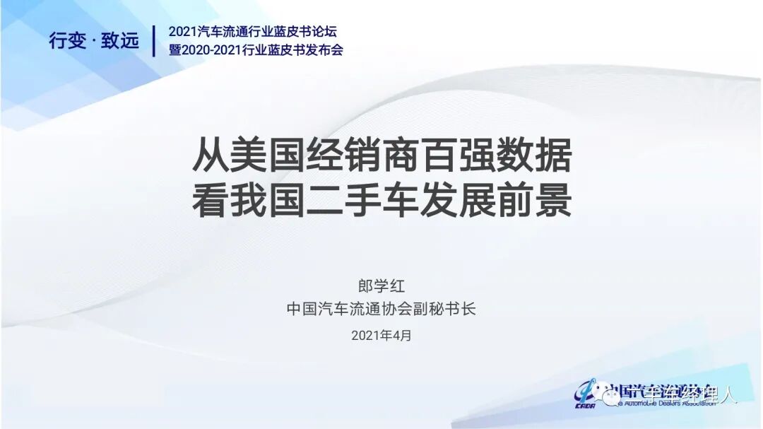 2021年4月14日,中国汽车流通协会以“行变•致远”为主题在武汉成功举办2021汽车流通蓝皮书论坛暨2020-2021蓝皮书发布会。