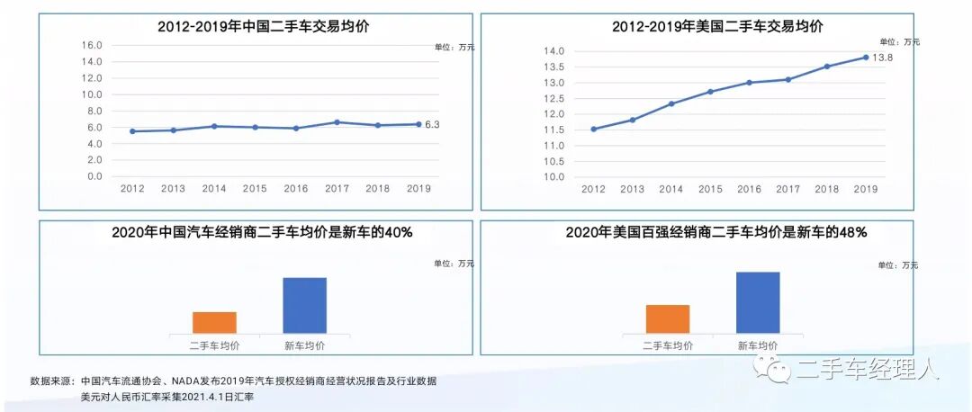 从二手车的车价看,美国百强经销商经营的二手车,平均价格是13.8万。