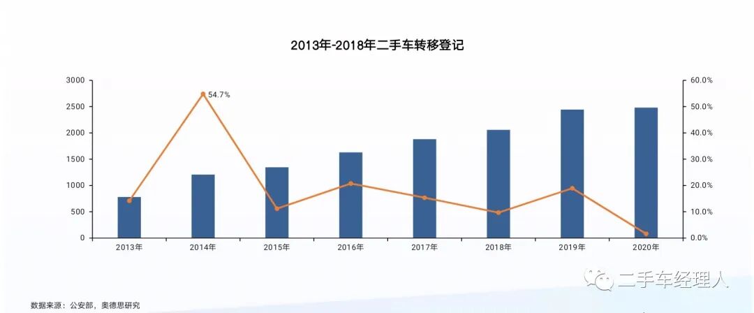 从公安部公布的二手车转移登记的数据可以看出,2014年二手车转移登记数据的增长率特别高。