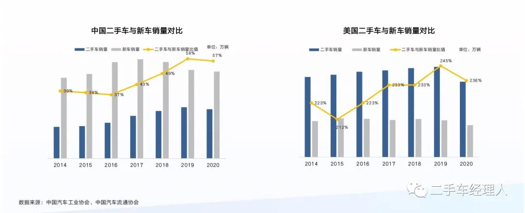 美国是反过来的,从上个世纪从80年代开始,美国二手车交易量就是新车交易量的2.5-3倍。