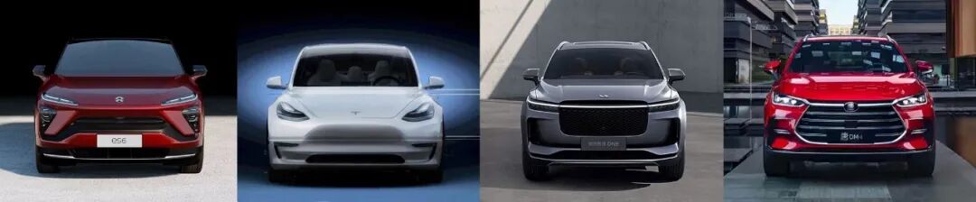 国产Model Y、蔚来ES6、理想ONE以及比亚迪唐DM它们其中既有纯电动车型,也有增程以及插电混动车型。