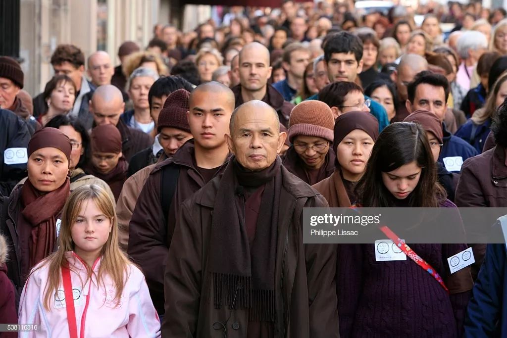 一行禅师和他的追随者,通过在纽约街头行禅,证明处处都可以获得安详。