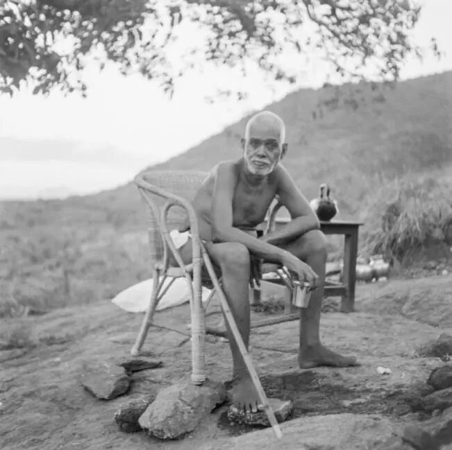 我们到处去寻求真我,问人:“真我在哪儿?它在哪儿?”到最后,智见(Jnana Drishti)出现,我们会说:“这个是真我,这个是我。”我们应该获得的是这种见地。有了它,就算入世待人接物,也会无所执着。你一旦穿上鞋子,就可步行于无数的石砾或荆棘之上而不觉脚痛,任意行走也无所畏惧,即使遇到层峰峻岭亦然。同样的,有了智见的人,一切都会成为自然。除了自己的真我,有何余物?
