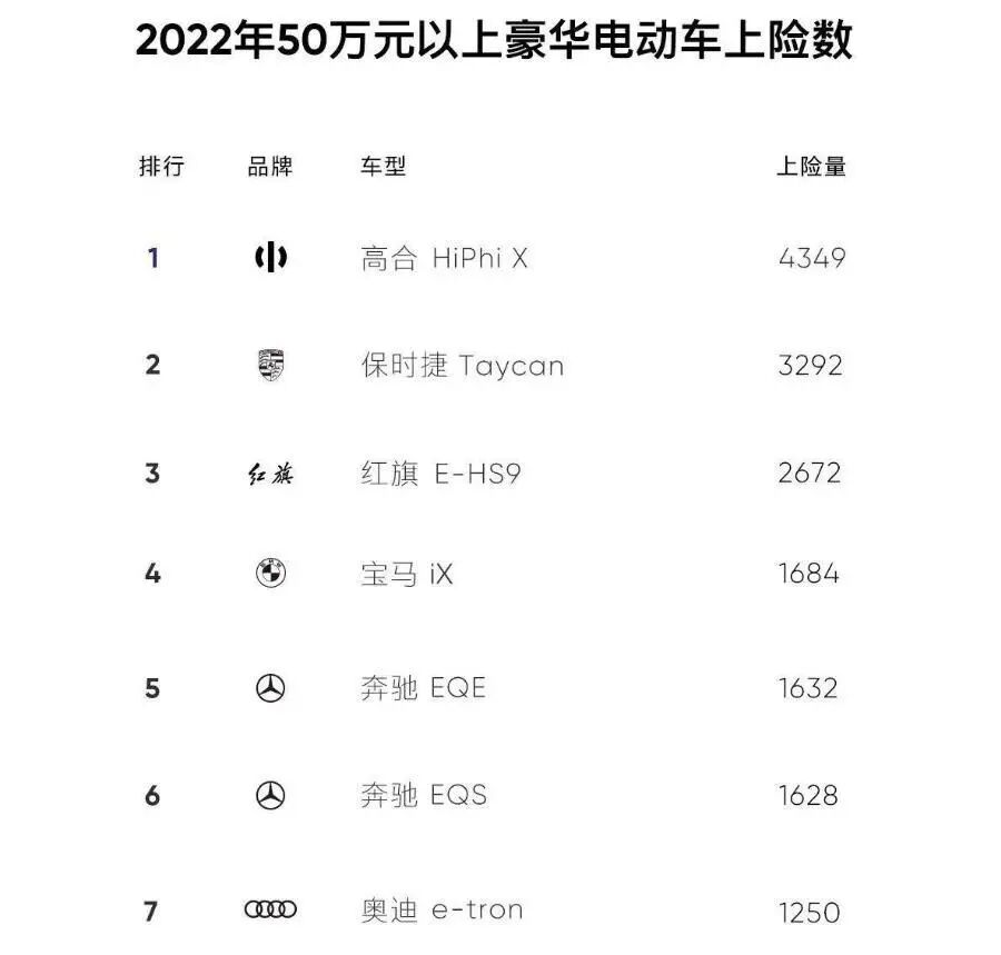 不过,别看卖的贵,销量其实还马马虎虎,2021年、2022年上险量均为4000多辆,已经是50万以上电动车销量中的第一名了。