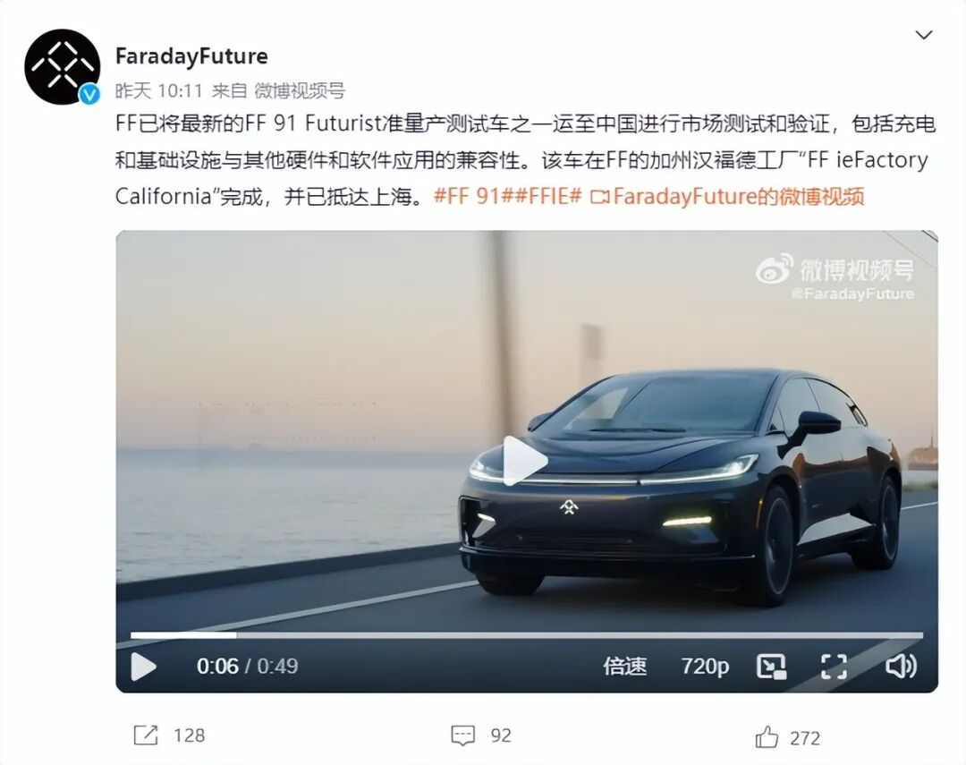 既然要国内的资本投资,至少要让国内的投资者相信他不是骗子,他的车是真实可靠的,所以把FF91拉到国内来,让大家看一看,这个是第一个目的。
