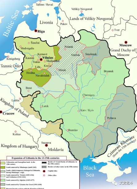 14世纪,莫斯科大公国逐渐崛起,在历代大公的领导下,莫斯科击败了蒙古人,开始统一罗斯国家。莫斯科公国的崛起让立陶宛和波兰两国压力倍增,为了共同御敌,两国又联合了起来。1385年,立陶宛的维陶塔斯和波兰签订了条约,迎娶了波兰女王雅德维加。此后,波兰又划给了立陶宛一部分土地,使得立陶宛的版图进一步扩大了。