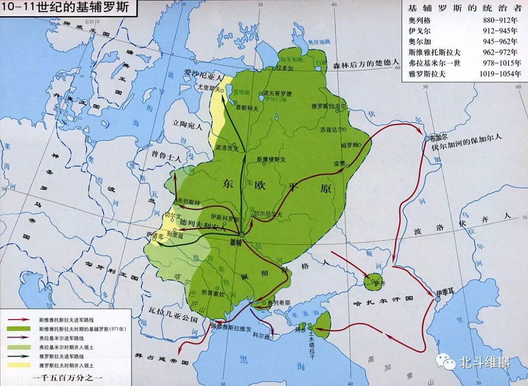 大约在10世纪中期,留里克王朝分裂为了大大小小的各公国,罗斯的历史走向开始发生巨大的改变。