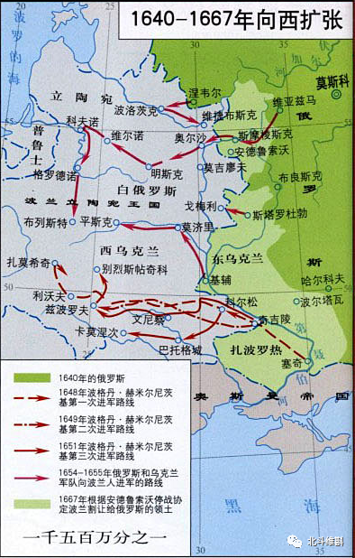 在16世纪,莫斯科大公国驱逐了蒙古人,基本实现了罗斯国家的统一。然而此时的乌克兰一带依然处于立陶宛的控制之下。