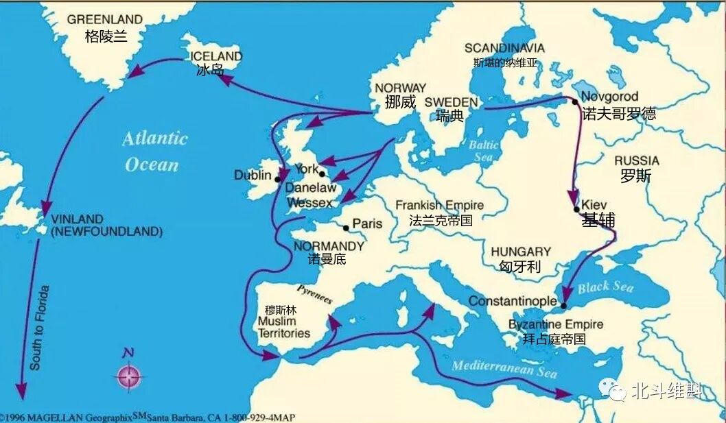 而东欧平原的北部靠近波罗的海,居住着北欧民族,古代被称为维京人。从8世纪开始,维京人开始疯狂地向南方扩张(可能是气候变冷了)。在西欧地区,他们攻入了英格兰、法国,甚至地中海沿岸。在东欧地区,他们自称为罗斯人(瓦良格人),在东欧平原的北部建立了一些国家,比如诺夫哥罗德(留里克王朝)。