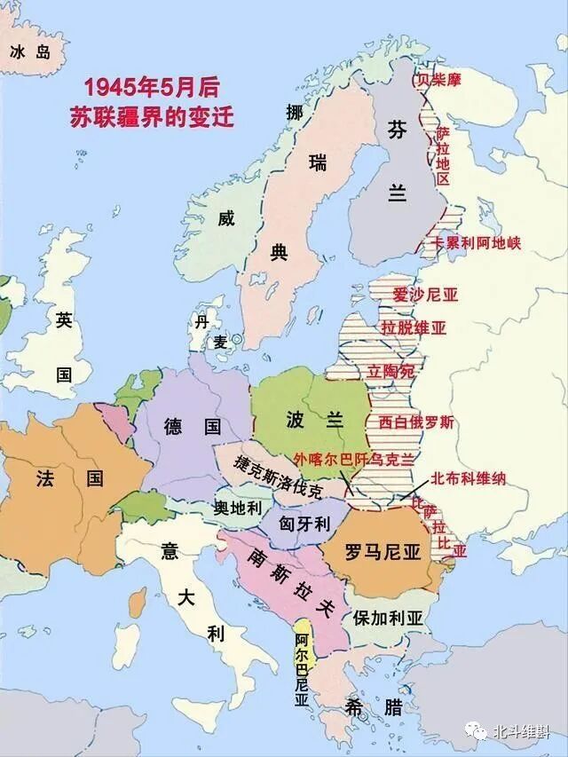 斯大林故技重施,再次将疆土向西推进。1945年6月,苏联将捷克的外喀尔巴阡乌克兰地区划给了乌克兰;1945年2月,通过雅尔塔会议,苏联从波兰手中得到了西乌克兰和西白罗斯地区。为了弥补波兰,苏联又将德国的西里西亚和东波美拉尼亚地区划给了波兰。里的土地。1947年,苏联将罗马尼亚的部分地区划给了乌克兰。