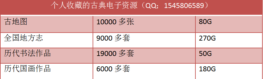 另外,我收藏了大量的电子版中国个地方方志9000多册、古代书法19000套、古代国画6000套,感兴趣的都可以咨询。另外,需要定制地图也可以联系。