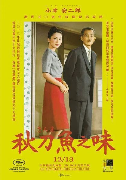 电影介绍:《秋刀鱼之味》是由小津安二郎执导,笠智众、岩下志麻主演的剧情片。影片讲述了老人平山的家庭生活和嫁女的过程。该片于1962年11月18日在日本上映。