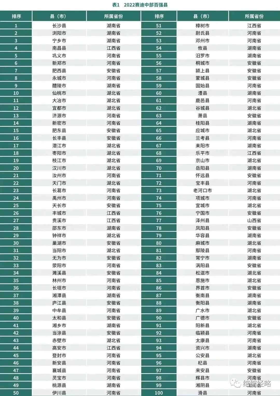 这是一份由赛迪顾问发布的中国中部地区百强县市的榜单,相对来说比较权威。完整榜单如下图所示,你的家乡上榜了吗?