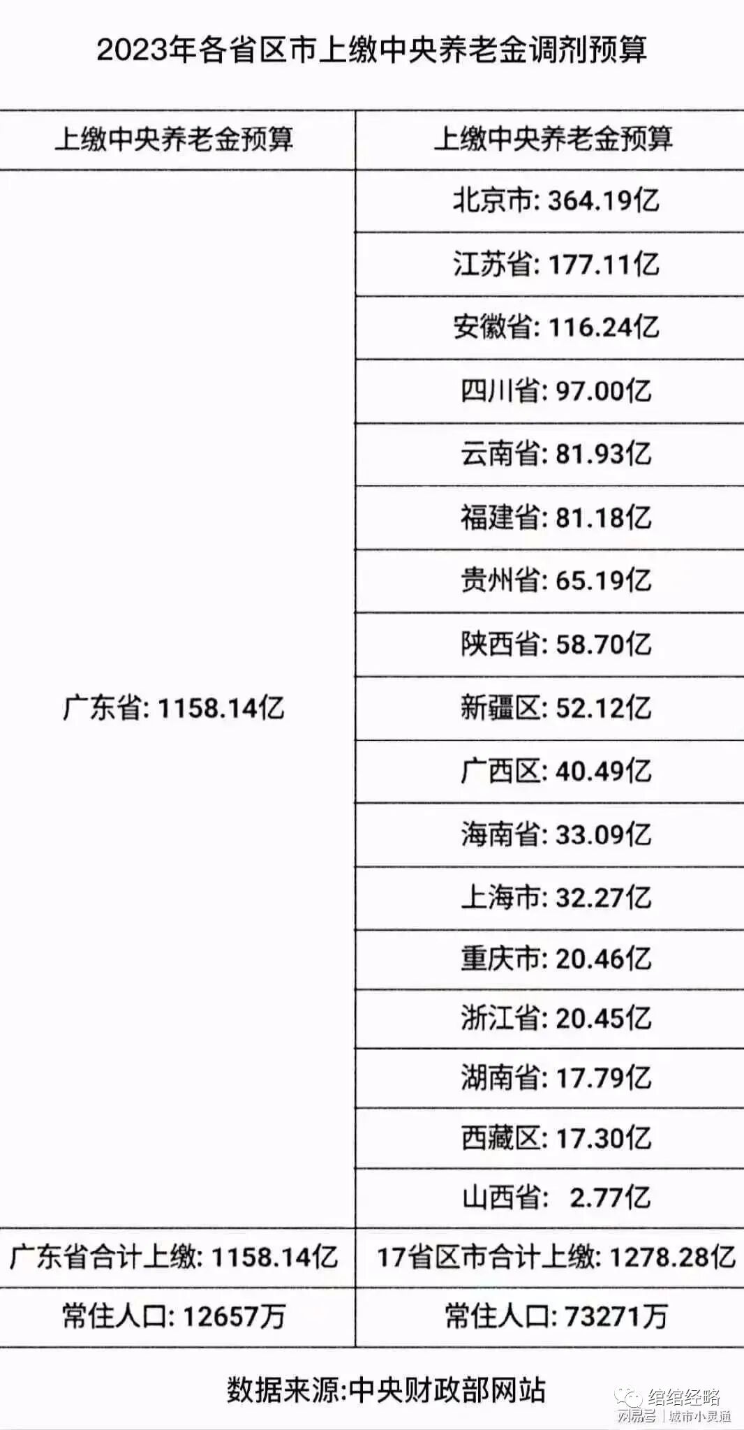 近日,各省市发布了2023年度上缴中央养老金预算的公告,总额达到了一个惊人的数字。据统计,广东省的上缴预算约等于其他17个省市的总和。这一数字引起了社会各界的广泛关注和讨论。