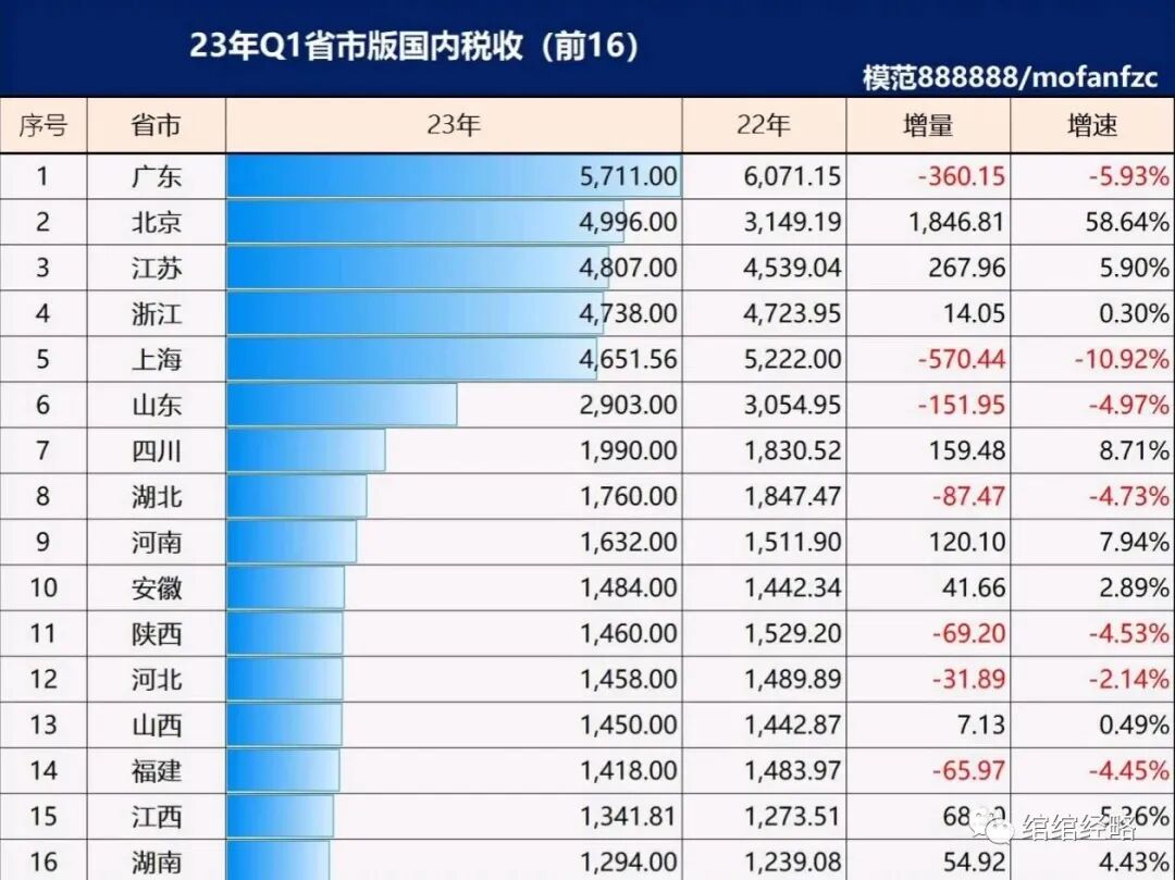 2023年第一季度中国税收16强省已经出炉,你的家乡上榜了吗?